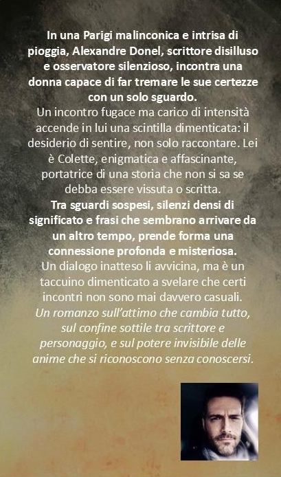 Un incontro fugace ma carico di intensità accende in lui una scintilla dimenticata: il desiderio di sentire, non solo raccontare. Lei è Colette, enigmatica e affascinante, portatrice di una storia che non si sa se debba essere vissuta o scritta.